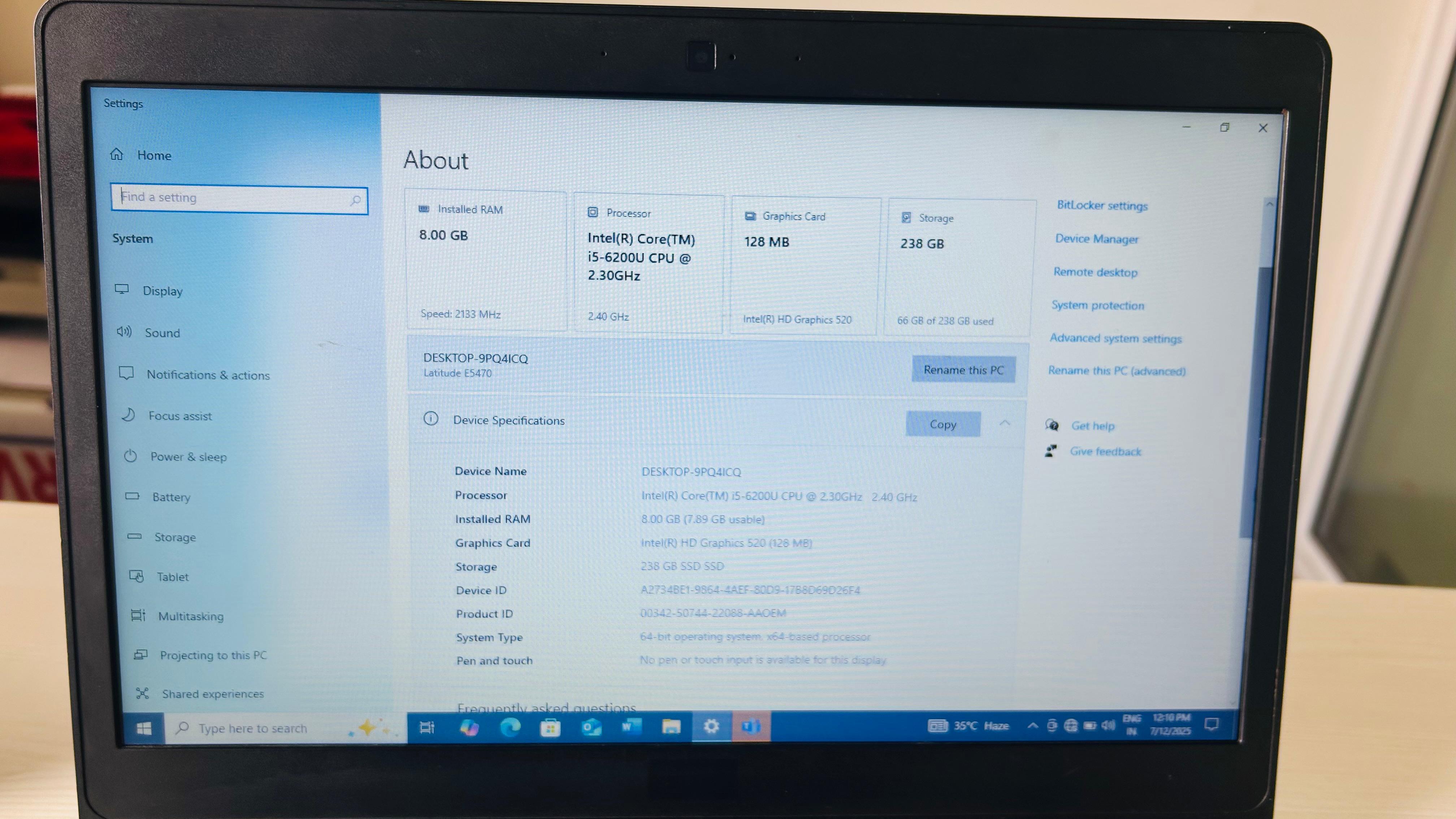 🔸 System Type: 64-bit OS, x64-based processor